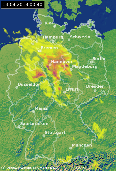 Radarbild von Freitag, 13.04.2018 um 00.40 Uhr