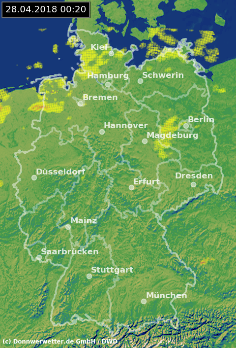 Heute fallen vom Emsland bis nach Schleswig-Holstein örtliche Schauer, auch an der Saar und am Oberrhein kann es zum Abend etwas regnen, oder einige Schauer geben. Die Niederschlagsmengen liegen jedoch meist unter 5 Liter pro Quadratmeter.