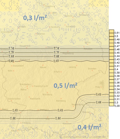 Von Sonntag auf Rosenmontag überquert uns wahrscheinlich mit auffrischendem Wind eine etwas intensivere Front mit Niederschlägen. Bei leichter Milderung fällt teils Regen, teils Schnee. Die Mengen liegen dabei meist zwischen 1 und 10 Liter pro Quadratmeter.