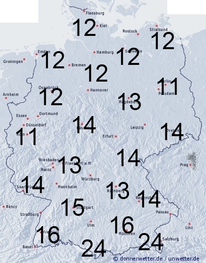 In Deutschland treten örtlich noch Niederschläge oder Schauer auf, die bis in tiefere Lagen herab als Schnee oder Schneeregen fallen. Sonst entsteht Benetzung durch Feuchtigkeit wie Tau- oder Reifansatz. Die Benetzungsdauer liegt allgemein zwischen 11 und 16 Stunden. Bei einer vorhandenen Schneedecke können aber auch bis zu 24 Stunden erreicht werden.