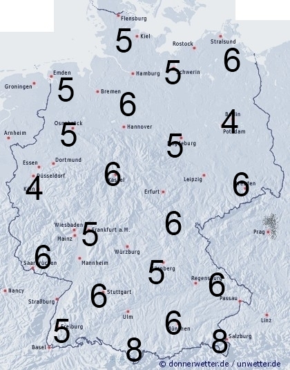 In Deutschland bleibt es überwiegend niederschlagsfrei. Leichte Benetzung entsteht allerdings durch nächtlichen Strahlungstau. Die Benetzungsdauer liegt allgemein zwischen 4 und 8 Stunden.