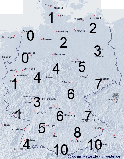 Schnee-, Regen- und Graupelschauer sorgen für recht unterschiedliche Benetzung in Deutschland. Meist werden zwischen 2 und 8 Stunden erreicht. An den Alpen treten Niederschläge, die bis in tiefere Lagen als Schnee fallen häufiger auf. Hier können über 10 Stunden Benetzung auftreten. Im Nordwesten bleibt es dagegen meistens trocken. Daher kommt es hier auch kaum zur Benetzung.