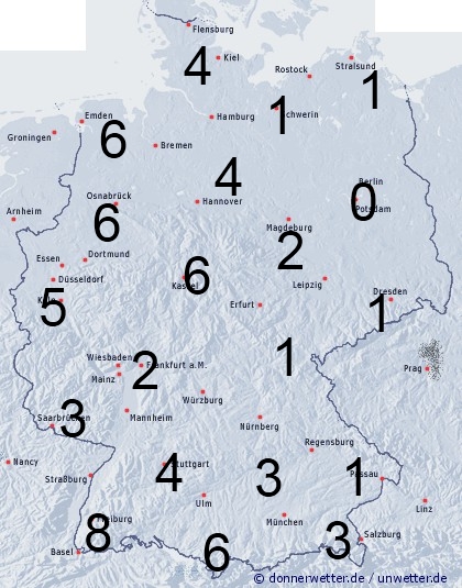 Die Benetzungsdauer erreicht bei teils gewittrigen Regengüssen 2 bis 8 Stunden. Nur im Osten bleibt es wohl noch trocken.