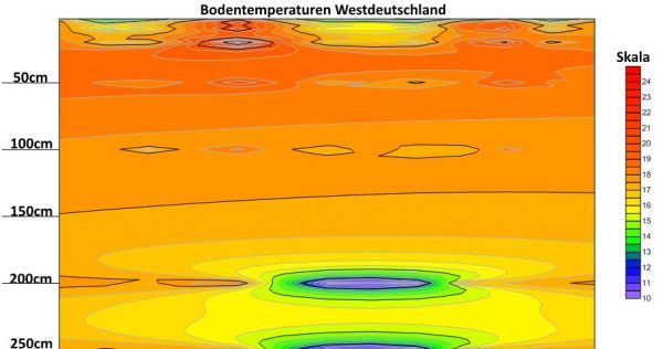 Bodentemperaturen vom 19.07.2016 bis zum 16.08.2016, für den Westen Deutschlands.