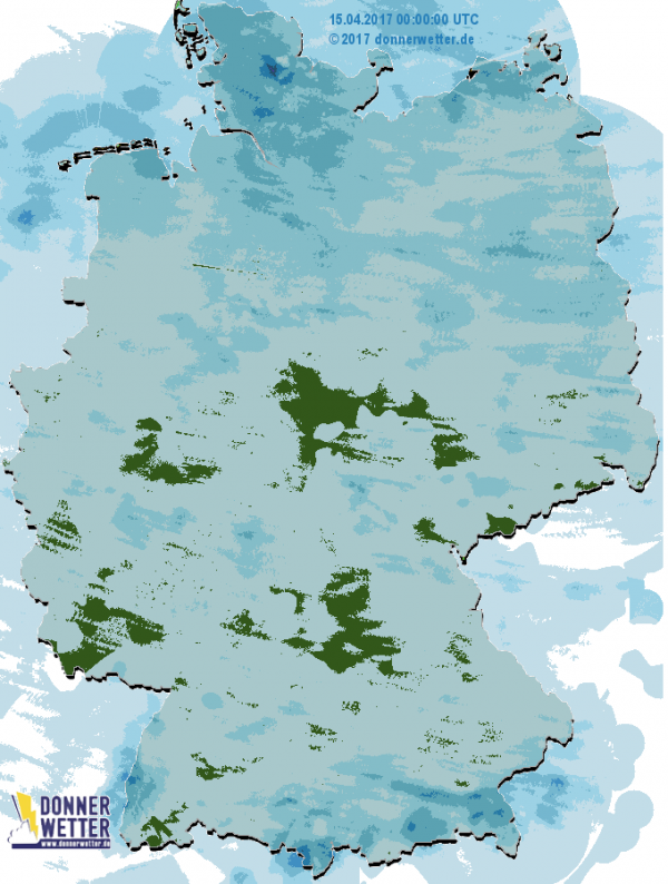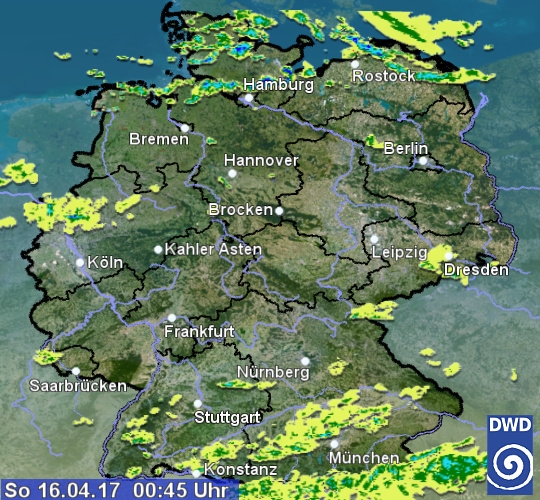 Radarbild von Ostersonntag, 16.04.2017 um 00.45 Uhr