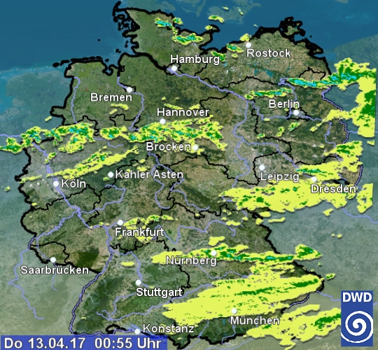 Radarbild von Donnerstag, 13.04.2017 um 00.55 Uhr