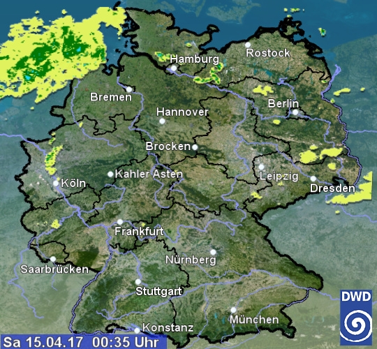 Radarbild von Samstag, 15.04.2017 um 00.35 Uhr