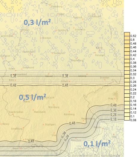 Heute fällt im Süden teils Regen, teils Schnee. Dabei kann es gebietsweise zu akuten Straßenverhältnissen kommen. Es ist mit Mengen zwischen 5 und 20 Liter pro Quadratmeter zu rechnen. Im Norden bleibt es überwiegend trocken.