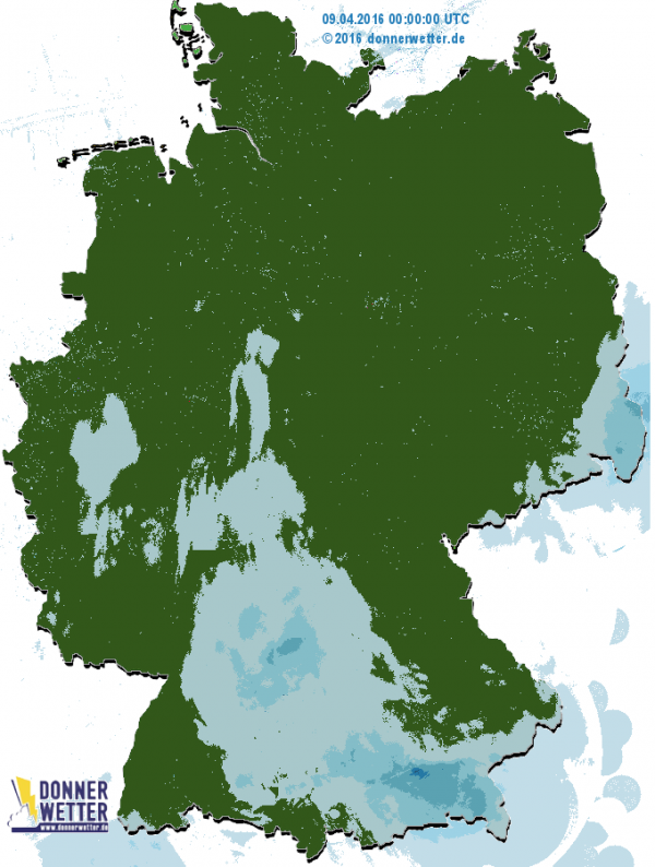 Gestern regnete es nur ein wenig in Bayern. Am Alpenrand gab es mehr als 1l/m2 und auch in Schwaben war es nasser. Ansonsten waren die Regenmengen sehr gering. Die Verdunstung betrug 2-3 l/m2, die Böden sind also ordentlich abgetrocknet.