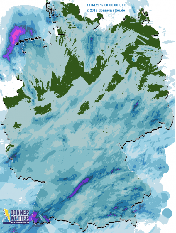 Gestern gab es den meisten Niederschlag auf den Ostfriesischen Inseln mit bis zu 40 l/m2. In Bayern und BadenWürttemberg lag die Regenmenge bei 20 l/m2 durch Schauer und Gewitter.