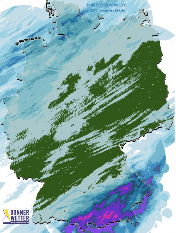 Teils ergiebiger Regen mit örtlichen Niederschlagsmengen über 35 mm verzeichneten die Hauptwetterstationen im Alpenvorland am gestrigen Dienstag. In Teilen Oberbayerns wurden sogar Tagesniederschlagsmengen >50 mm gemessen.