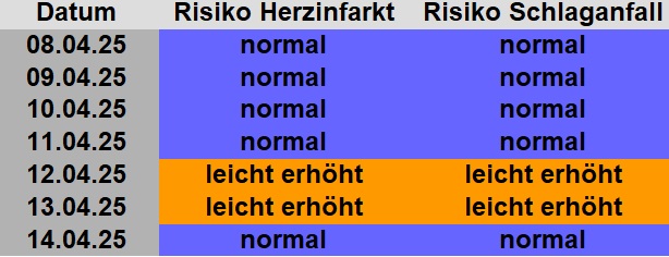 Den nächsten Tagen können Herzinfarkt- und Schlaganfallpatienten überwiegend entspannt entgegensehen.