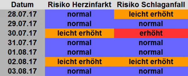 Die Schlaganfall- und Herzinfarktrisiken bis zum 26.07.2017