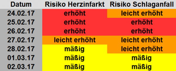 Die aktuellen Herz-Kreislauf- und Schlaganfallrisiken bis 02.03.2017