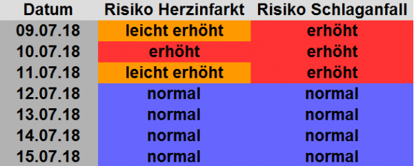 Die Schlaganfall- und Herzinfarktrisiken bis zum 15.07.2018.