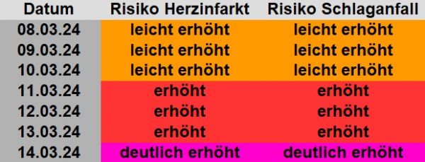 Die Schlaganfall- und Herzinfarktrisiken bis 14.03.2024