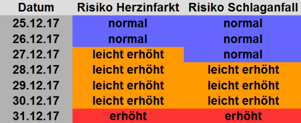 Das Herz- und Schlaganfallrisiko ist in den nächsten Tagen durch einen leichten Aufstieg der Temperaturen leicht erhöht.