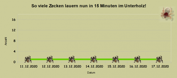 Trotz wieder milderer Temperaturen in den nächsten Tagen bleibt es ruhig in Wäldern und Wiesen. Die Risiken, auf einen der Blutsauger zu treffen, sind weiterhin sehr gering.