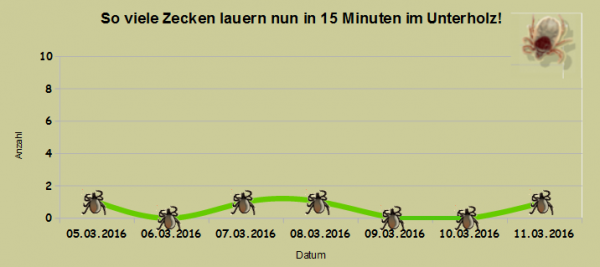 Auch am Wochenende und in der neuen Woche ist wenig los im Unterholz; es ist für die Blutsauger auf Wirtsuche einfach viel zu kalt!