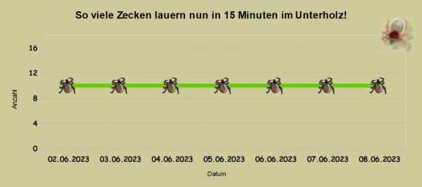 Bei einem 15-minütigen Spaziergang im Unterholz ist im Wochenverlauf mit einer Belastung von bis zu zehn Zecken zu rechnen.