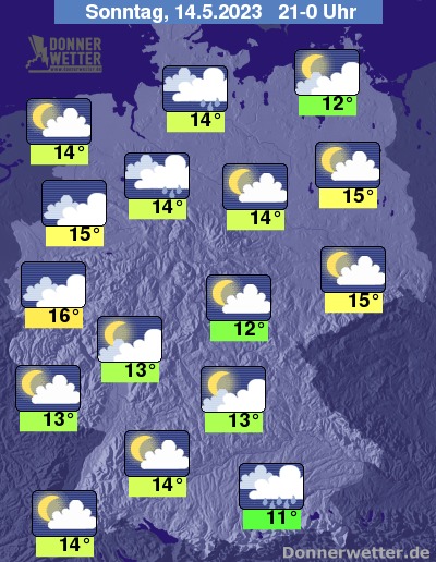 Die Temperaturen fallen bis Mitternacht auf Werte um 16 Grad in der Kölner Bucht und 11 Grad im Berchtesgadener Land.