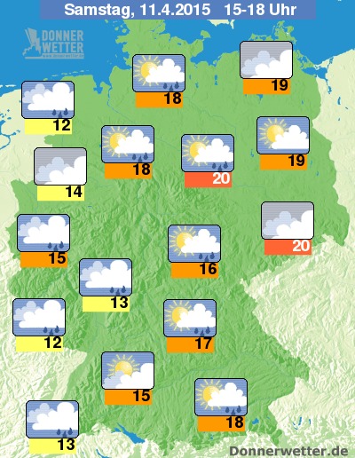 Heute Nachmittag ist es im Osten noch oft aufgelockert bewölkt und weitgehend trocken, sonst ist es hingegen schon zumeist stark und nur gebietsweise auch aufgelockert bewölkt, dazu bilden sich einzelne Schauer, vereinzelt sich auch Gewitter möglich. Die Temperatur liegt bei 12 Grad im Saargau und um 20 Grad in Magdeburg.