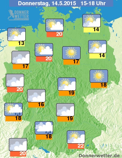 Heute Nachmittag ziehen in die Südwesthälfte des Landes oft dichte Wolken und es entwickeln sich zum Teil kräftige Schauer und Gewitter. Im Norden und Osten bleibt es bis in den Abend hinein dagegen locker oder auch stärker bewölkt und dabei trocken. Die Temperatur liegt bei 13 Grad in Cuxhaven und um 22 Grad in Memmingen.