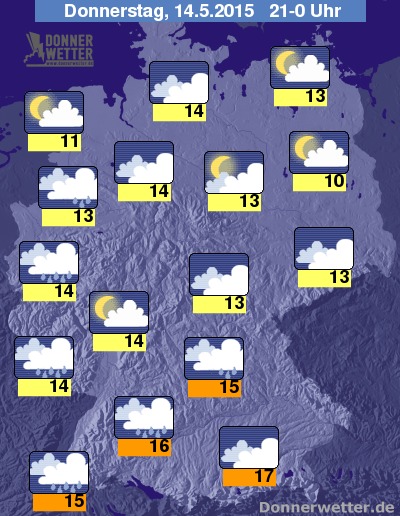 Heute Abend ziehen über die Südwesthälfte des Landes meist dichte Wolken und es können sich immer wieder Schauer und auch einzelne Gewitter entwickeln. Im Norden und Osten ist es teils aufgelockert, teils aber auch stark bewölkt, dabei bleibt es aber trocken. Die Abendtemperatur liegt bei 17 Grad in München und bei 11 Grad in Emden.