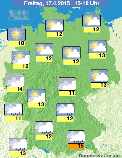 Heute Nachmittag ziehen im Süden des Landes verbreitet dichte Wolken durch und es fällt zum Teil kräftiger Regen. In der breiten Mitte Deutschlands ist es teils locker, teils auch stärker bewölkt, aber dabei trocken. Im Norden zeigt sich ein weitgehend heiterer, oft sogar sonniger Himmel und es bleibt ebenfalls trocken. Die Temperatur liegt bei 10 Grad an der Nordsee und um 15 Grad in München.