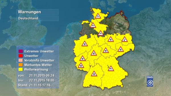 Am Sonntag zeigt sich der Himmel über der Südhälfte des Landes weitgehend bedeckt, dazu fällt hier auch immer wieder Regen, Schneeregen oder Schnee mit entsprechender Glättegefahr! Weiter nach Norden hin überwiegend meist starke Bewölkung, aus der ebenfalls Regen, Schneeregen oder Schnee fallen kann, gebietsweise lockert es jedoch auch auf und es bleibt für längere Zeit trocken. Die Höchstwerte erreichen 2 Grad in München und bis 6 Grad in Düsseldorf. Im Norden weht dazu ein teils starker, an den Küsten stürmischer Wind.