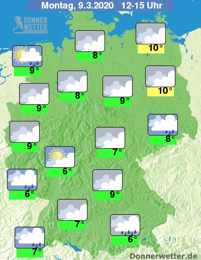 Die Temperaturen erreichen am Nachmittag Höchstwerte um 7 Grad in Unterfranken und um 11 Grad in Leipzig.