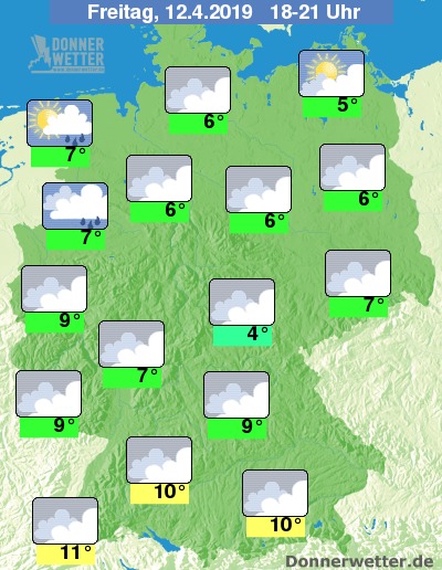 Die Temperaturen bewegen sich vor Dämmerungsbeginn noch zwischen 4 und 9 Grad, ganz im Süden und Südwesten können anfangs auch noch zweistellige Werte erreicht werden.