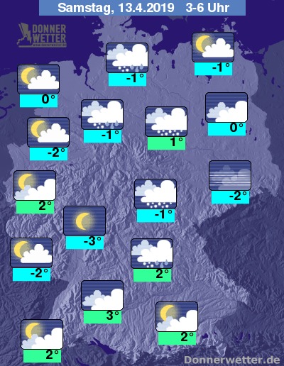 Während der zweiten Nachthälfte häufen sich die Schauer in der Nordhälfte und ziehen später auch in die Landesmitte hinein. Dabei fällt teilweise Schnee. Sonst wechseln sich Wolken und Sterne miteinander ab. Über Sachsen kann sich Nebel bilden.