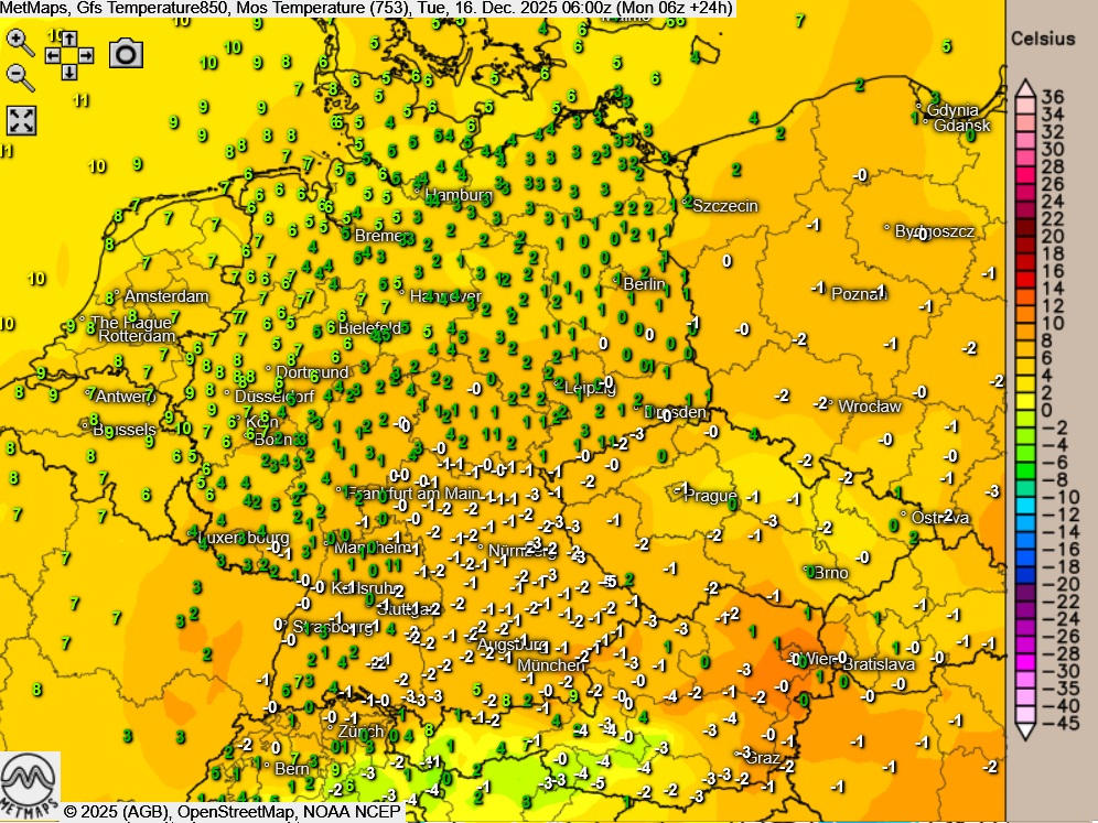 Im Dauergrau erreichen die Temperaturen heute Werte um 2 Grad, sonst Höchstwerte um 6 bis 11 Grad.