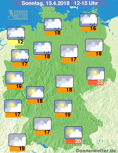 Heute Nachmittag ziehen oft viele und auch dichte Wolken übers Bundesgebiet hinweg, dazwischen kann sich aber auch immer wieder mal die Sonne zeigen. Vor allem im Norden und Nordwesten bilden sich gebietsweise Schauer, örtlich auch Gewitter, sonst sind nur vereinzelte Schauer möglich. Die Temperatur liegt bei 12 Grad in Cuxhaven und bis 22 Grad in Dresden.