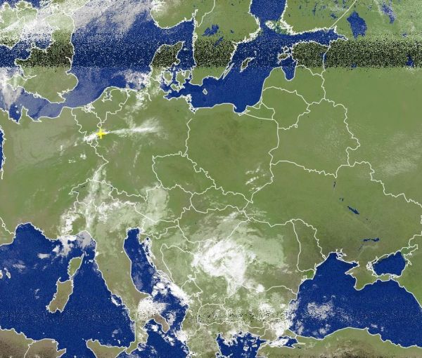 Auf dem Satellitenfoto von heute Mittag ist ein kräftiges Tiefdruckgebiet über Südosteuropa zu sehen, es sorgt mit seinen Ausläufern auch in der Umgebung für sehr unbeständiges Wetter mit Schauern und Gewitter. Über Irland und Schottland sorgen die Ausläufer eines Tiefdruckgebiets über der Nordsee ebenfalls für sehr durchwachsenes Wetter. In den übrigen Regionen ist es dagegen verbreitet heiter oder auch sonnig und trocken.