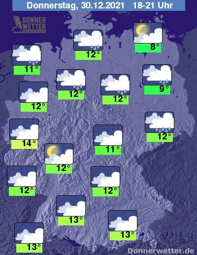 Heute Nachmittag bleibt es größtenteils stark bewölkt oder bedeckt, dabei zieht ein Regenband vom Südwesten nordostwärts, vor und hinter dem breiten Band bleibt es weitgehend trocken. Die Temperatur liegt bei 7 Grad an der Müritz und bis 14 Grad in der Kölner Bucht. Es weht ein oft starker und teils stürmischer Wind.