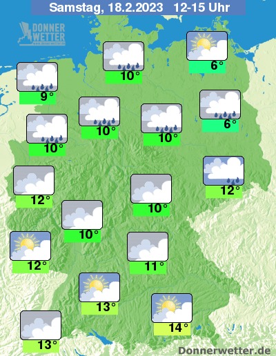 Heute Nachmittag bleibt es über der Südhälfte Deutschlands weitgehend trocken und südlich des Mains kann sich auch des Öfteren die Sonne zeigen. Weiter nach Norden bleibt es dagegen bedeckt und es fällt vielerorts Regen. Die Temperatur liegt bei 6 Grad an der Müritz und 14 Grad in Oberbayern. Es weht weiterhin ein häufig starker und zum Teil auch stürmischer Wind.