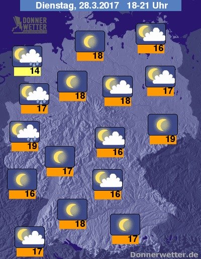 Heute Abend bleibt es im Land bei größtenteils lockeren Wolken oder sternenklarem Himmel. Entlang des Rheins und der Ems können sich allerdings lokal Schauer und vereinzelte Gewitter entwicklen. Die Abendwerte liegen bei 14 Grad in Emden und bis 19 Grad in Köln.