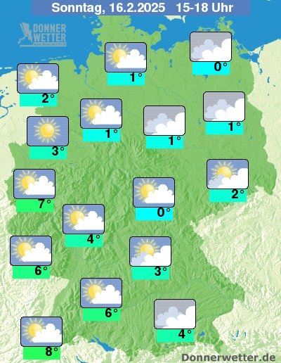 Die Temperaturen erreichen am Nachmittag Höchstwerte um 0 bis 8 Grad.