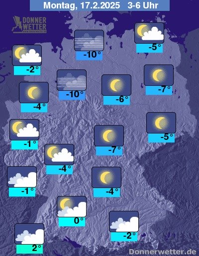 Lokal Tiefstwerte unter -10 Grad in der Nacht zum Montag.