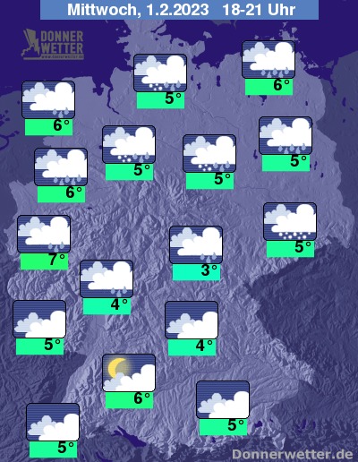 Heute Abend ziehen von Norden und Nordwesten her kompakte Wolken mit Regen und Schneeregen auf, die auch rasch bis zur Breiten Landesmitte vorankommen. Im Süden ist es zwar ebenfalls stark bis dicht bewölkt, hier fällt aber nur vereinzelt etwas Regen, Schneeregen oder Schnee. Die Temperatur liegt bei 3 Grad im Eichsfeld und 7 Grad in der Kölner Bucht. Der Wind weht weiterhin stark und teils stürmisch. An der Nordsee herrscht schwerer Sturm.