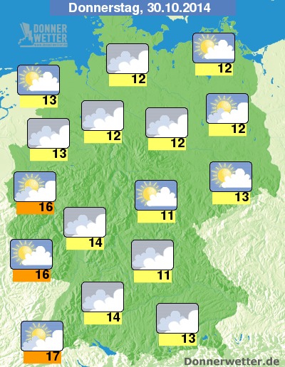Auf Sonnenarmut sollte man sich dagegen schon einmal in den nördlichen und südlichen Bundesländern gefasst machen. Schauer sind allerdings nur selten zu erwarten. Hier verbreitet Höchstwerte um 11 bis 14 Grad C.