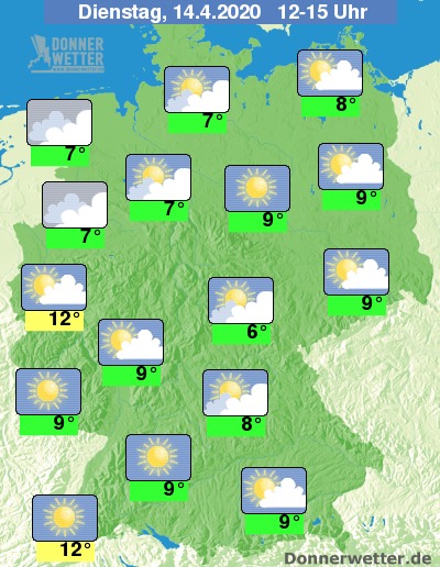 Am frühen Nachmittag halten sich im Nordwesten zum Teil dichtere Wolkenfelder. Regen fällt jedoch kaum. In den anderen Landesteilen gibt es eine freundliche Mischung aus Sonne und meist nur lockeren Wolken, im Südwesten scheint die Sonne auch für längere Zeit von einem blauen Himmel.