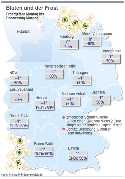Wo ist die Frostgefahr am größten? Was tun, um sensible Blüten und Knospen zu schützen? Dies und mehr in unserer Infografik!