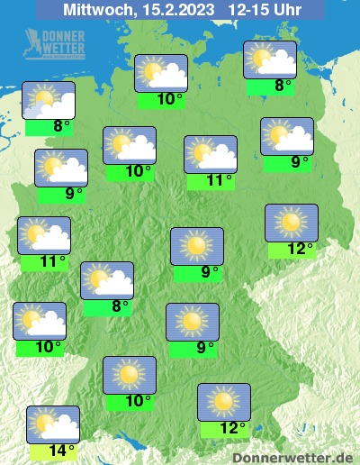 Heute Nachmittag ist es oft heiter bis sonnig, gebietsweise ziehen auch mal ein paar mehr Wolken durch. Es bleibt dazu trocken bei Werten von 8 Grad an der Müritz und bis 14 Grad im Oberrheingraben.