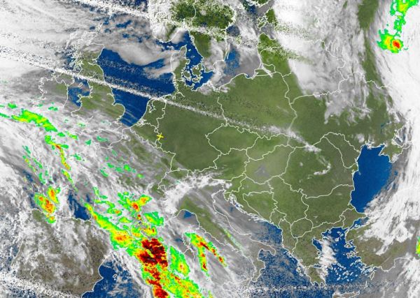 Das Satellitenbild von heute Morgen zeigt, wo sich heute die Menschen über sonniges Frühlingswetter freuen können. Dabei sorgt eine Hochdruckbrücke von den Britischen Inseln, über Mittel- bis nach Osteuropa für sehr sonniges, trockenes und mildes Frühlingswetter. Tiefausläufer des Atlantiktiefs "Roswitha" bringen hingegen im westlichen Mittelmeerraum teils sehr unbeständiges Wetter mit regional auch kräftigen Schauern und Gewittern.