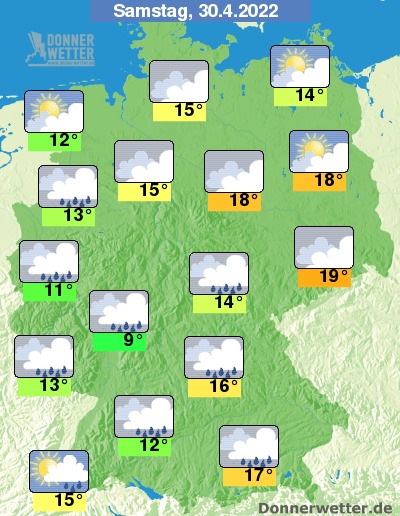 Heute ist es verbreitet stark bewölkt, über der Südhälfte und vor allem an den Alpen bilden sich dabei gebietsweise Schauer, an den Alpen entwickeln sich zudem einzelne Gewitter. Im übrigen Land bleibt es weitgehend trocken und weiter nach Norden hin zeigen sich häufig Aufheiterungen. Die Temperatur steigt auf 9 Grad am Westerwald und bis 19 Grad in der Lausitz.