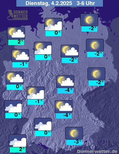 Die Temperaturen gehen zurück auf Werte um 2 Grad in Ostfriesland und -4 Grad in Franken.