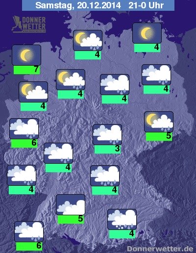 Heute Abend lockert die Bewölkung im Norden und Westen gebietsweise auf, es können sich jedoch vereinzelt weitere Schauer entwickeln. In den anderen Landesteilen bleibt es dagegen weitgehend bedeckt und es fällt zeitweise Regen oder Schneeregen, in höheren Lagen auch Schnee. Dazu weht noch verbreitet frischer bis starker, in Böen und an der See stürmischer Wind. Die Abendtemperatur liegt bei 7 Grad an der Nordsee und 3 Grad am Thüringer Schiefergebirge.